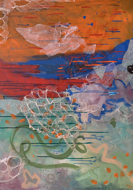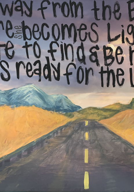 El Duende process-painting is an art therapy technique that involves sequential layers of paint (and in this case found objects) to a single canvas over a period of time. The images below show the weekly changes made to a 30" x 40" canvas as part of my processing of my relocation from South Carolina to Montana. Each layer encompasses my reflections and reactions to my experiences as I navigated my new environment, sometimes including goals for the coming week, hopes for the future, and the continued contemplation of my personal identity as an art therapist.